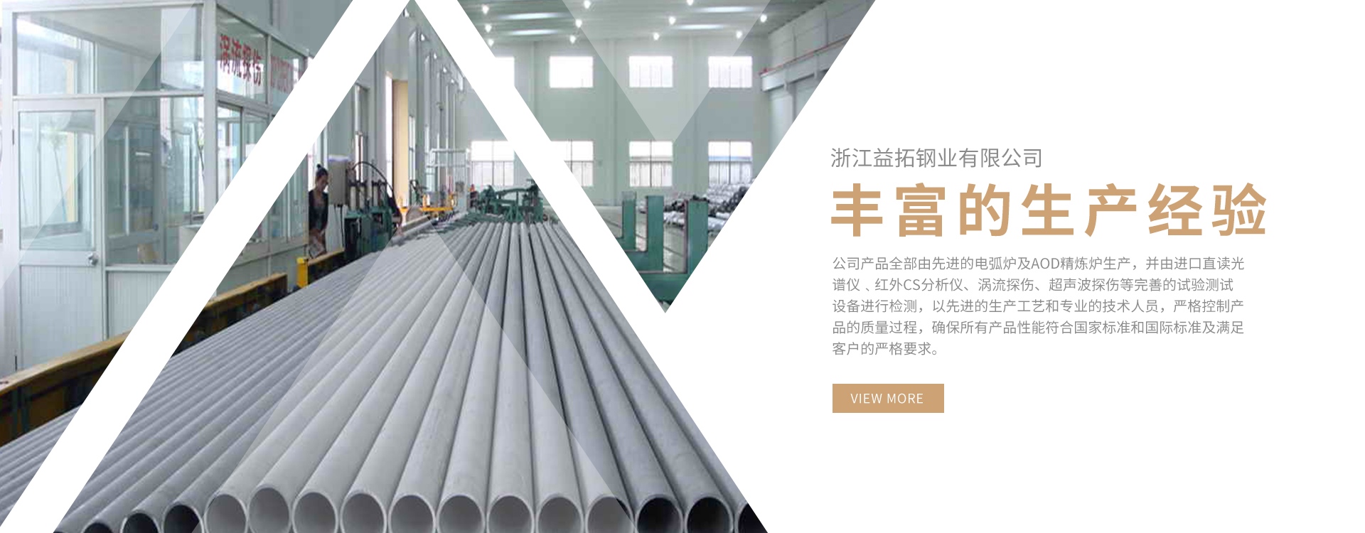 浙江益拓鋼業有限公司位于中國不銹鋼管的生產基地-浙江溫州,是一家通過了國際質量管理體系ISO9001-2000認證,專業生產和銷售不銹鋼管材及其制品的現代化新型企業。公司產品全部由先進的電弧爐及AOD精煉爐生產,并由進口直讀光譜儀﹑紅外CS分析儀、渦流探傷、超聲波探傷等完善的試驗測試設備進行檢測,以先進的生產工藝和專業的技術人員,嚴格控制產品的質量過程,確保所有產品性能符合國家標準和國際標準及滿足客戶的嚴格要求。